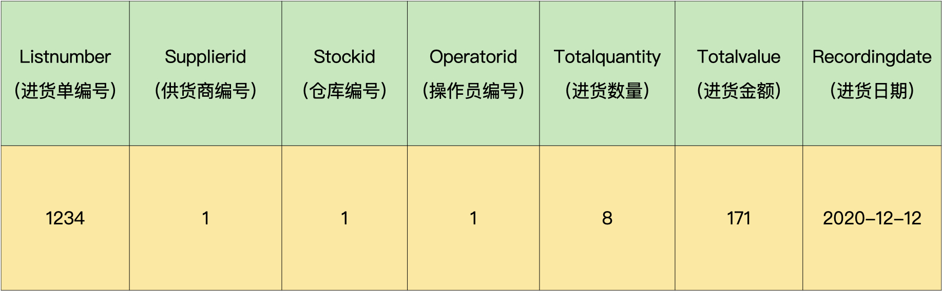 进货单头表: