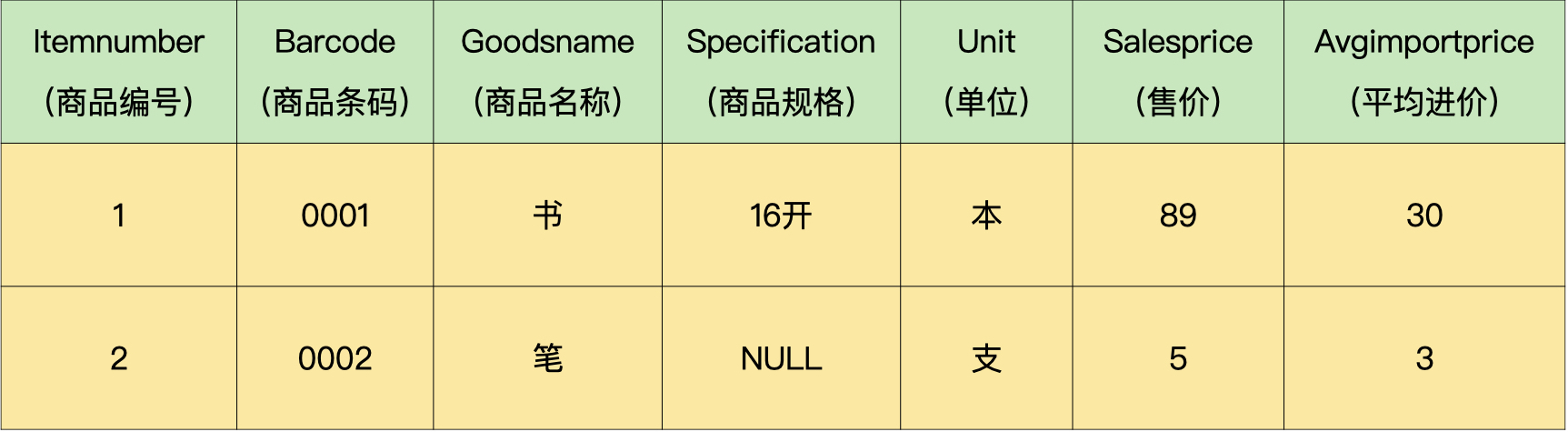 商品信息表: