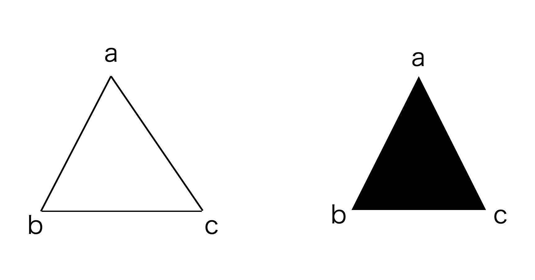 这么说可能比较抽象,我 来举个例子。我们可以将图元设为线段,那么片元着色器就会处理顶点之间的线段上的像素点信息,这样画出来的图形就是空心的。而如果我们把图元设为三角形,那么片元着色器就会处理三角形内部的所有像素点,这样画出来的图形就是实心的。