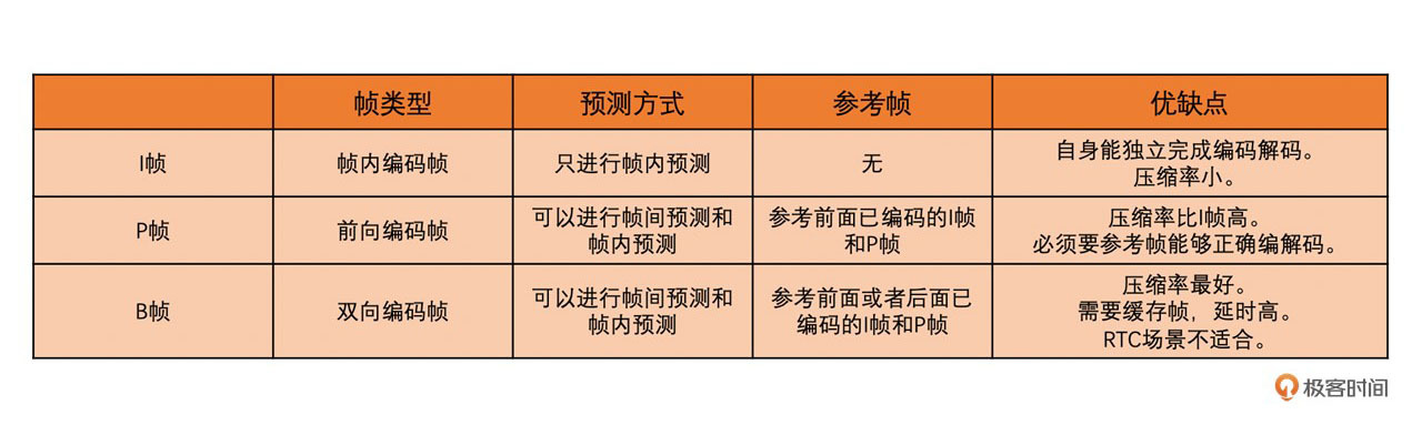 并且,在RTC和直播场景中,可能会因为网络原因导致丢包而引起接收端的丢帧,大的GOP最终可能导致参考帧丢失而出现解码错误,从而引起长时间花屏和卡顿。这一块我们会在之后用单独的一节课来详细讲述。总之,GOP不是越大越好,也不是越小越好,需要根据实际的场景来选择。