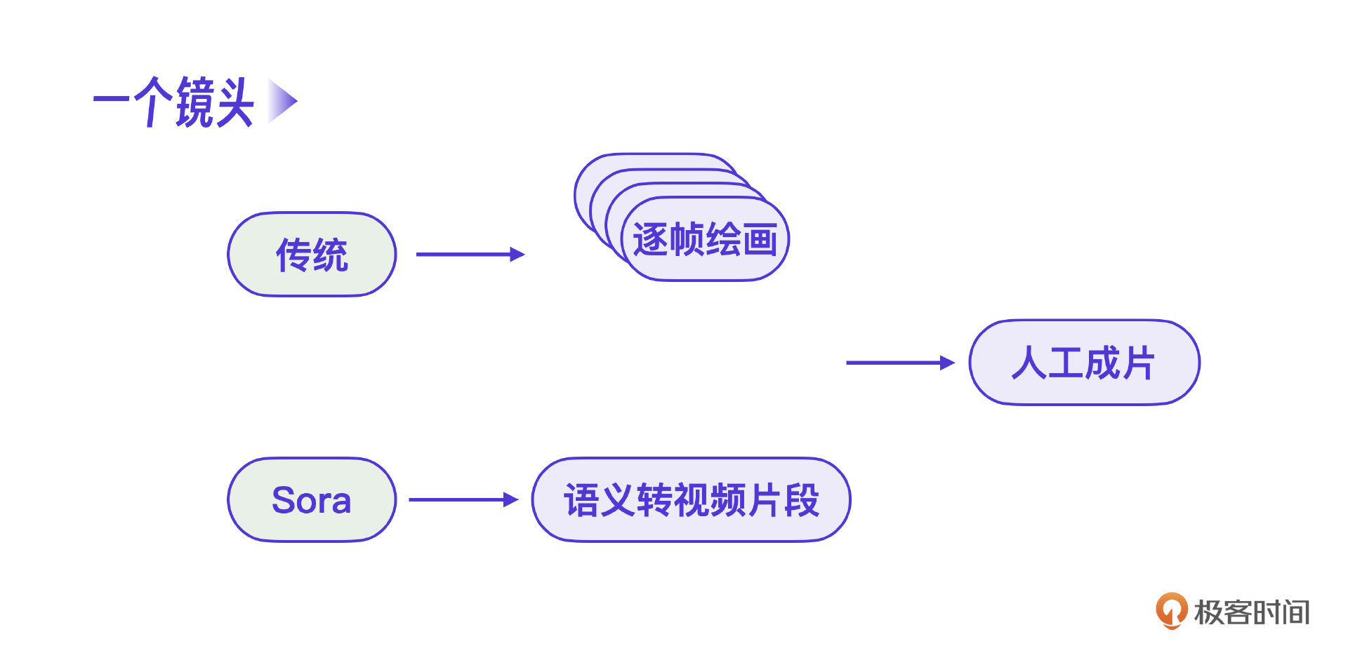 要用控制的方式制作视频,就必须退回到逐帧绘制视频画面才能完成,否则语义是不连贯的。而真正Sora类的视频平台的原理是什么呢?注意,Sora的核心就是真正把一个镜头的语义完整地表示出来,底层是通过视频大模型的训练完成的。而其目的也不是生成整个视频,只是生成一个镜头,最终的完整视频制作还需要人工制作。换句话说,Sora类视频AI是替换了原工业流程里的逐帧绘画。