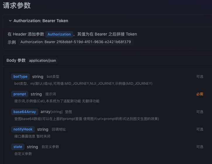 MJ文生图有两个核心的接口操作,_Imagine操作和Change操作,分别负责文生图和放大图片。下面是Imagine的具体参数和调用示例。