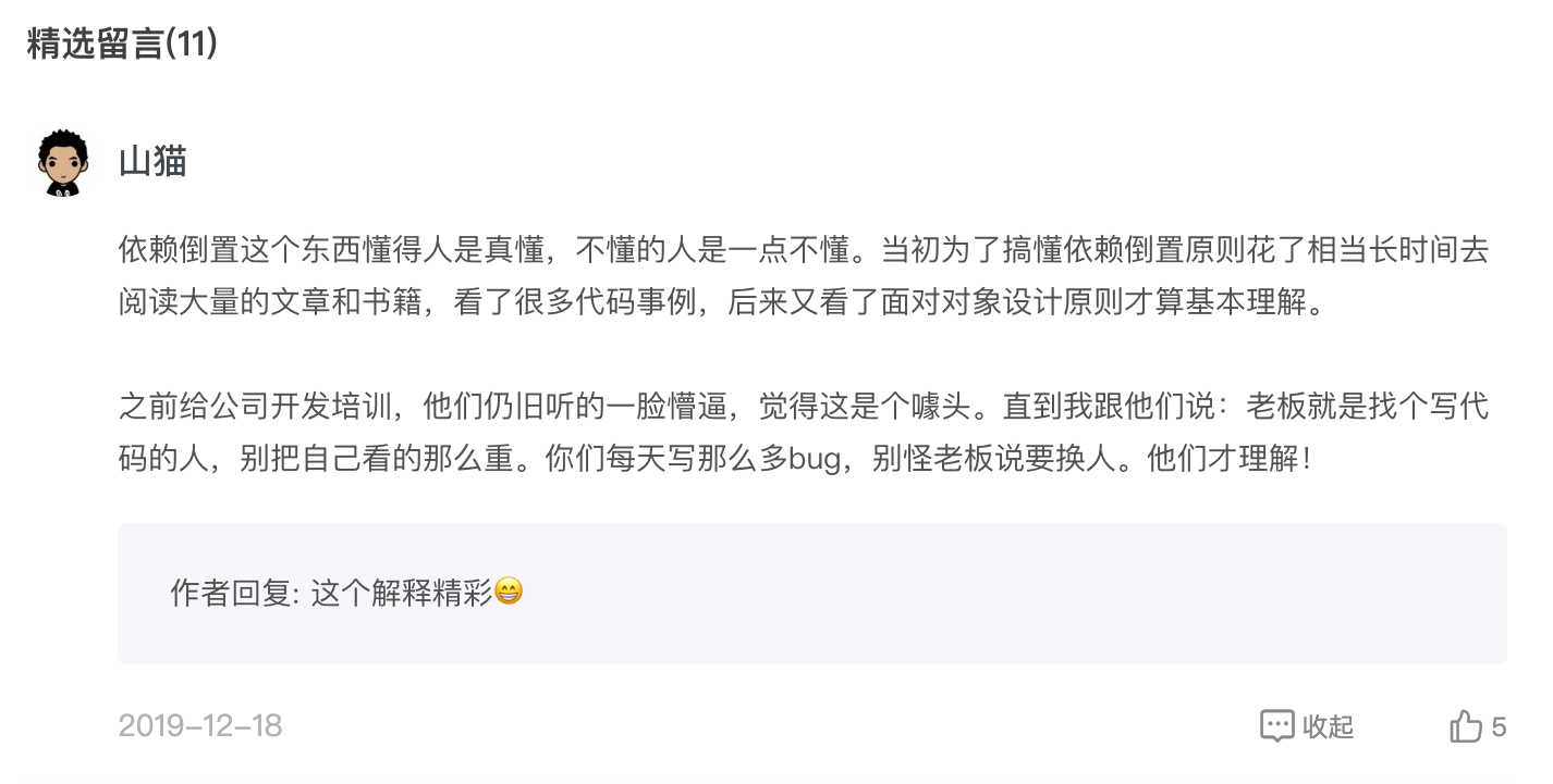 关于依赖倒置原则,评论区有一个精彩留言,分享给你。