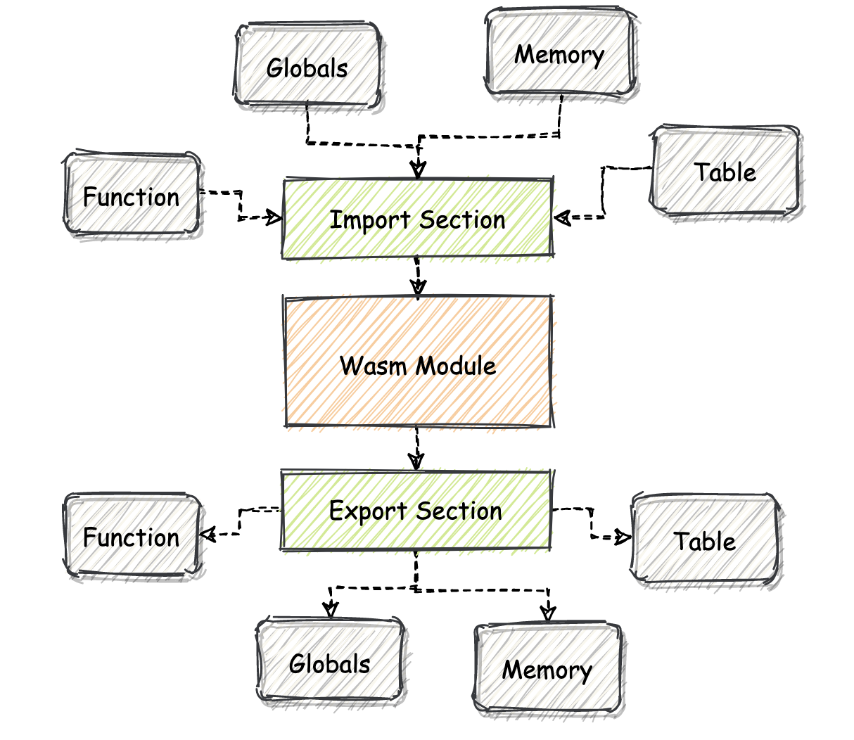 接下来要讲解的这些 Section 被划分到了“互补 Section”这一类别,也就是说,每一组的两个 Section 共同协作,一同描述了整个 Wasm 模块的某方面特征。