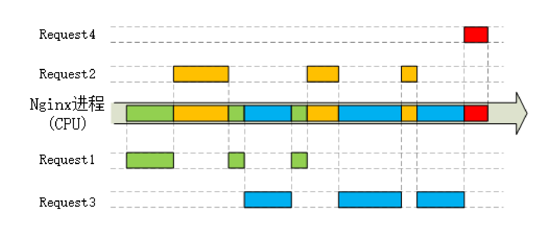 在Nginx之前,Web服务器的工作模式大多是“Per-Process”或者“Per-Thread”,对每一个请求使用单独的进程或者线程处理。这就存在创建进程或线程的成本,还会有进程、线程“上下文切换”的额外开销。如果请求数量很多,CPU就会在多个进程、线程之间切换时“疲于奔命”,平白地浪费了计算时间。