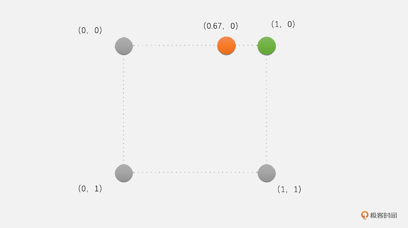 - 对于1080P图像的(1,0)位置的像素,我们映射到720P图像就是(1 * 1280 / 1920, 0 * 720 / 1080),也就是(0.67,0)位置的像素,这个像素需要插值得到。使用最近邻插值的话,(0.67,0)周围的4个像素分别是(0,0)、(1,0)、(0,1)和(1,1),其中距离(0.67,0)最近的位置很明显是(1,0)位置的像素。因此,我们将原图像中(1,0)位置的像素值赋值给目标图像(1,0)位置的像素点。