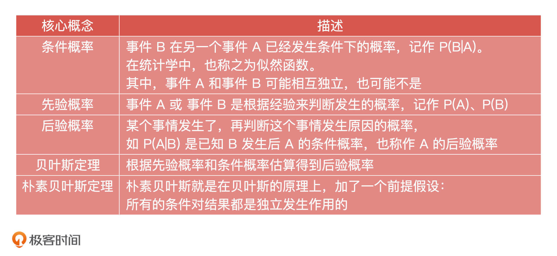 这就是贝叶斯的原理:当不知道这个事物实际情况的时候,我们可以根据一些相关的条件来判断这个事物的本质。与贝叶斯相关的基础概念有 3 个,分别是条件概率、先验概率、后验概率。