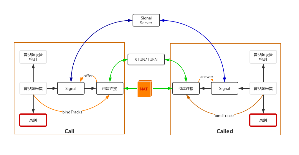 这里需要再次说明的是,由于本专栏的文章是聚焦在 WebRTC 的使用上,所以我们只讲如何使用 WebRTC 库实现客户端录制音视频流。至于服务端录制的相关知识,由于与 WebRTC库无关,所以我们就不做进一步讲解了。
