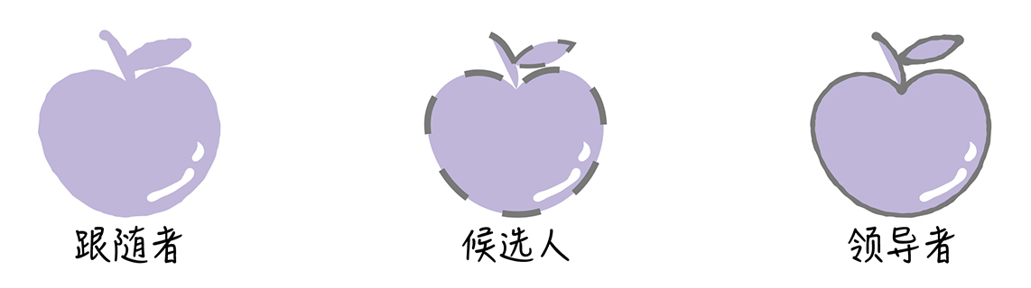 成员身份,又叫做服务器节点状态,**Raft算法支持领导者(Leader)、跟随者(Follower)和候选人(Candidate) 3种状态。**为了方便讲解,我们使用不同的图形表示不同的状态。在任何时候,每一个服务器节点都处于这3个状态中的1个。