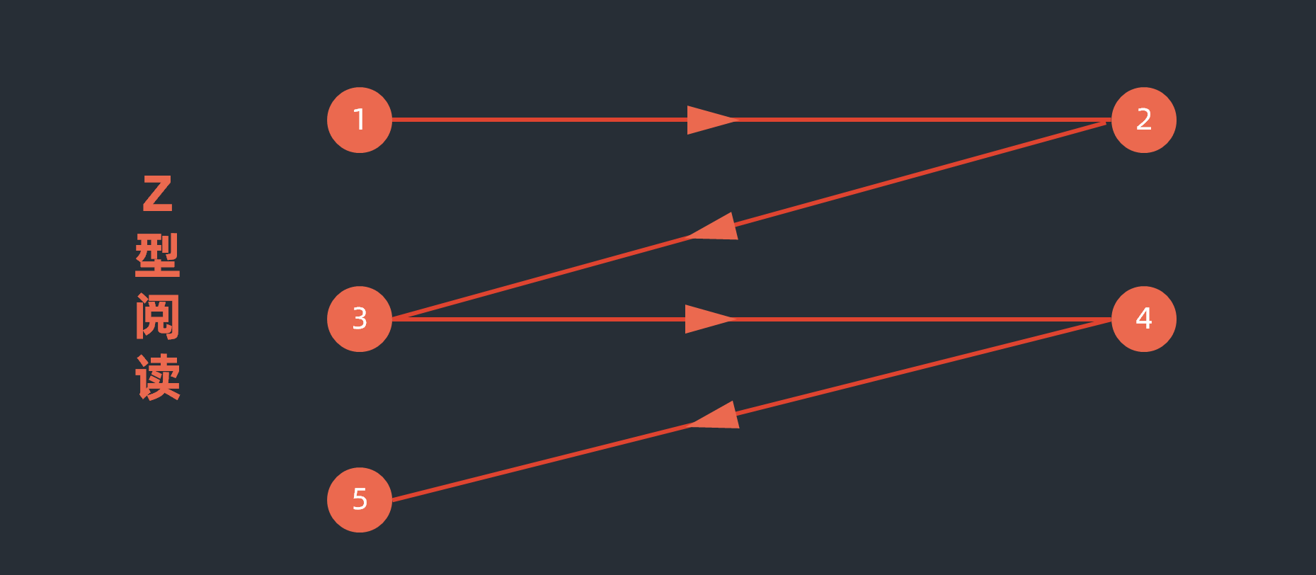 请注意,当页面上的内容有很多的时候,这个Z型的浏览会一直持续下去,所以是一系列的Z,而不是一个Z型轨迹。