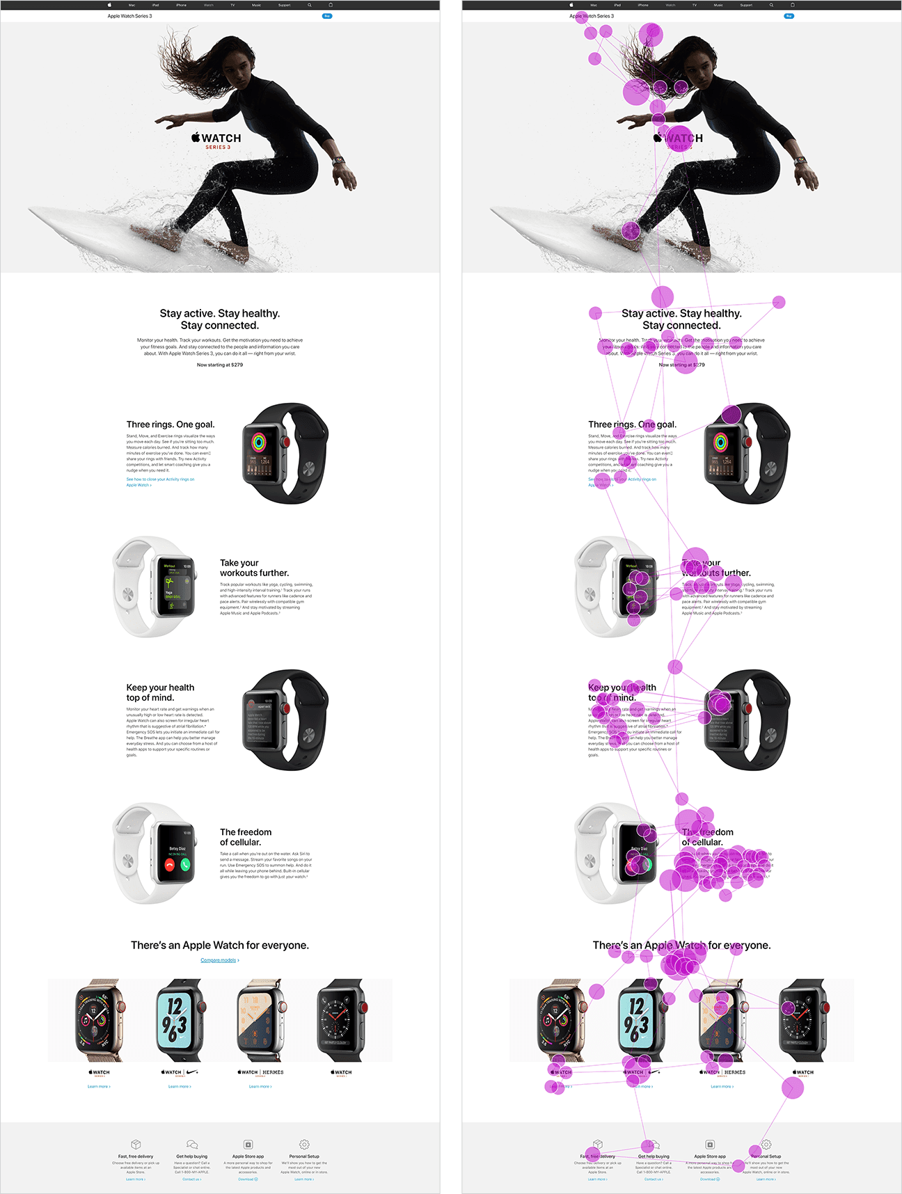 下面这个苹果介绍Apple Watch的网页,对Z型模式的运用就非常到位。