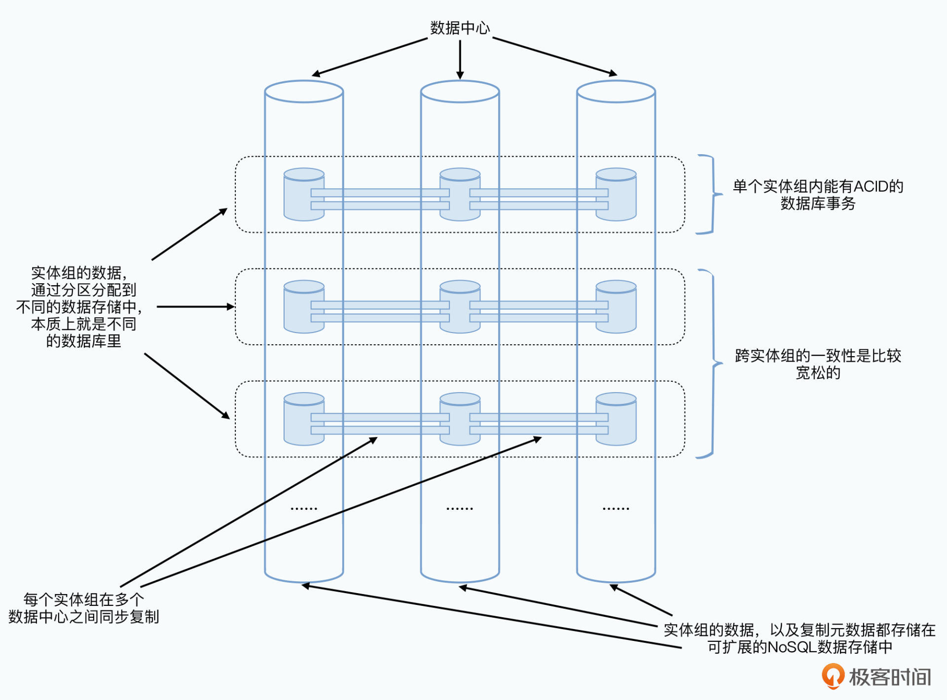 首先,它引入了一个叫做**“实体组”**(Entity Group)的概念。Megastore里的数据分区,也是按照实体组进行数据分区的。