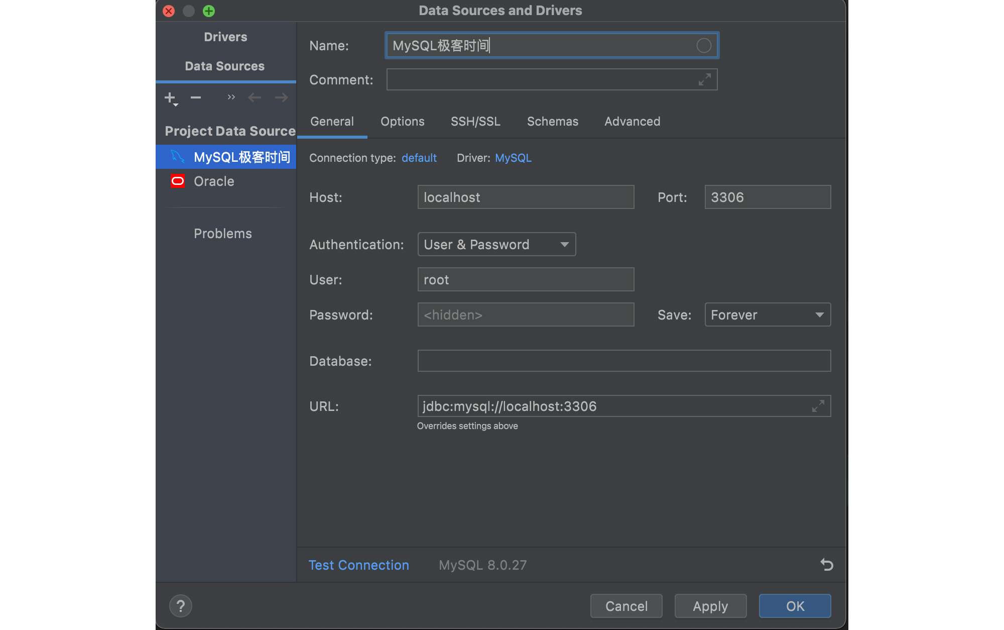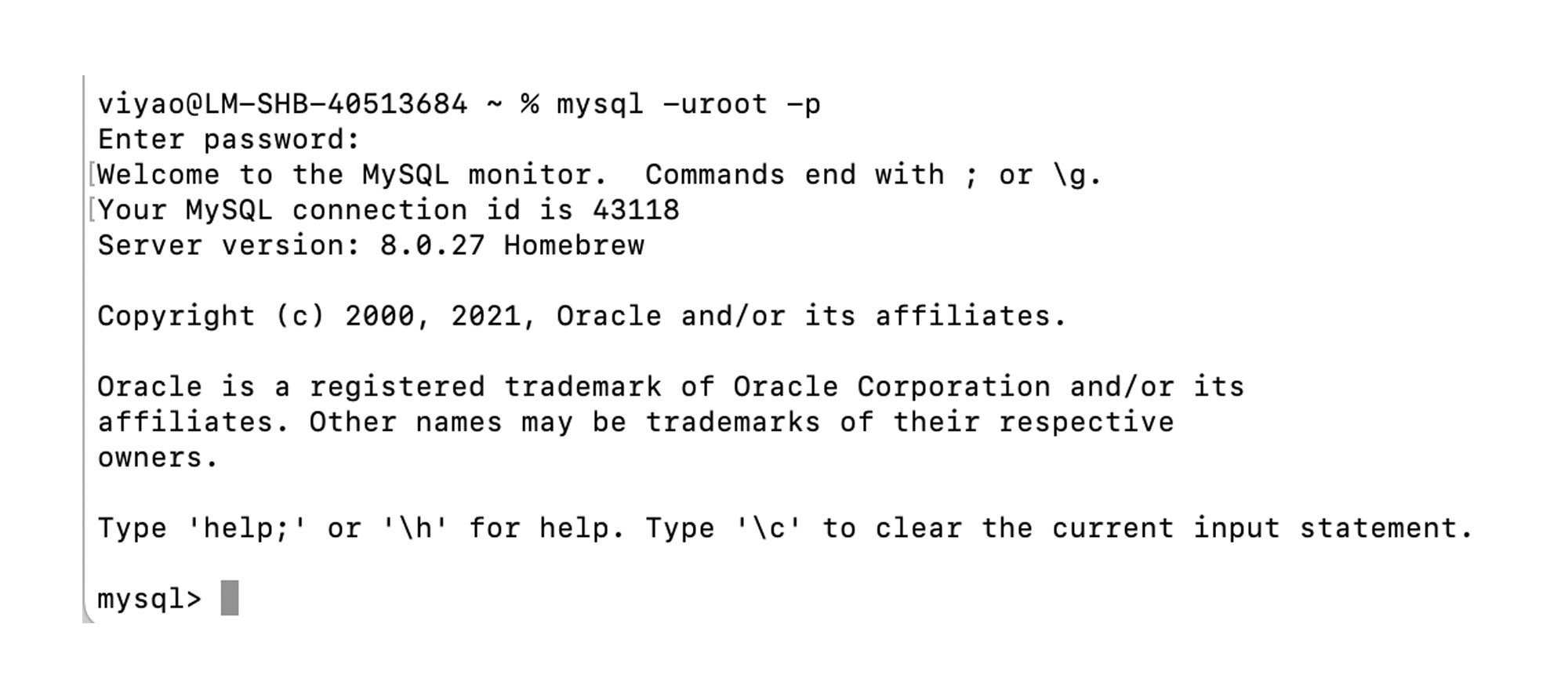 我本地安装的MySQL服务器版本为8.0.27,你可以使用brew命令安装最新版的MySQL,具体命令为: