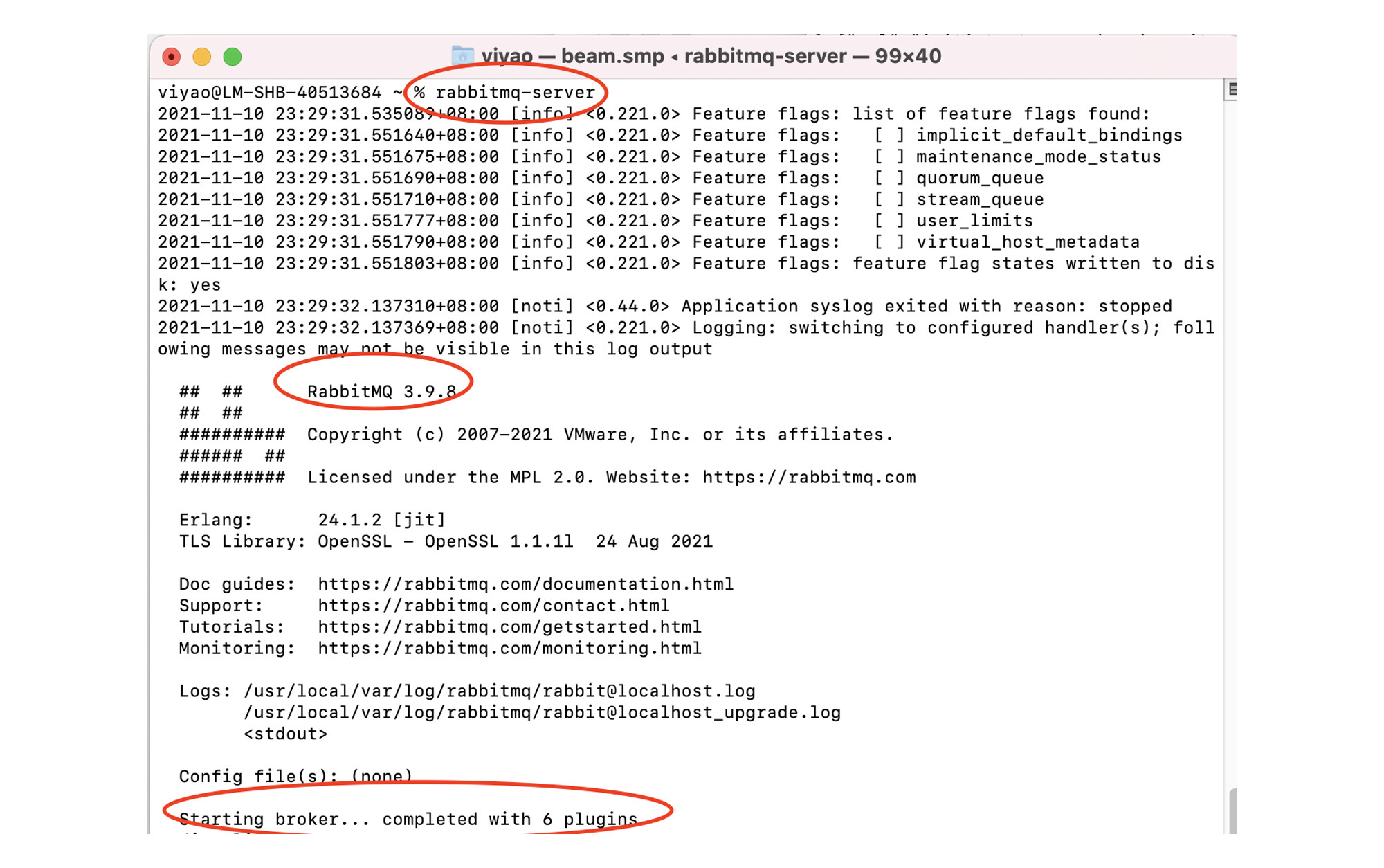 在安装完成之后,你可以直接通过在命令行执行下面这条代码来启动RabbitMQ。