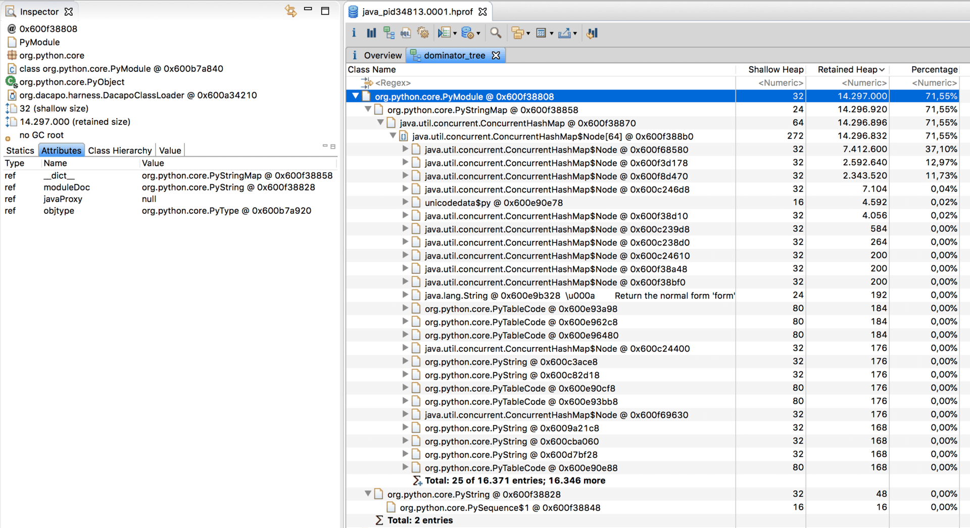 MAT将按照每个对象Retained heap的大小排列该支配树。如下图所示: