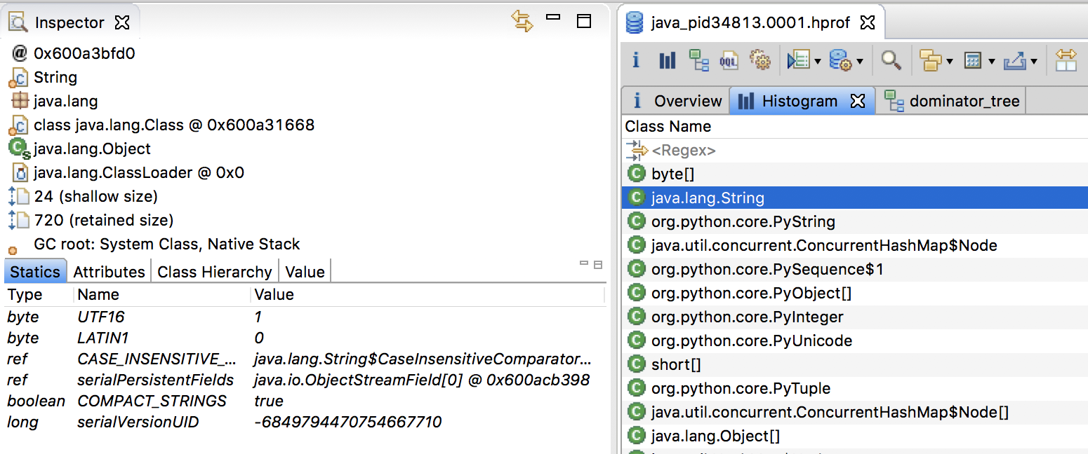 eclipse MAT可用于分析由jmap命令导出的Java堆快照。它包括两个相对比较重要的视图,分别为直方图和支配树。直方图展示了各个类的实例数目以及这些实例的Shallow heap或Retained heap的总和。支配树则展示了快照中每个对象所直接支配的对象。