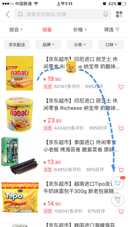 好的设计要通过一个连贯动效,让你的采购物品通过一个弧线自动落入购物篮,告知你已经加入购物篮成功了。