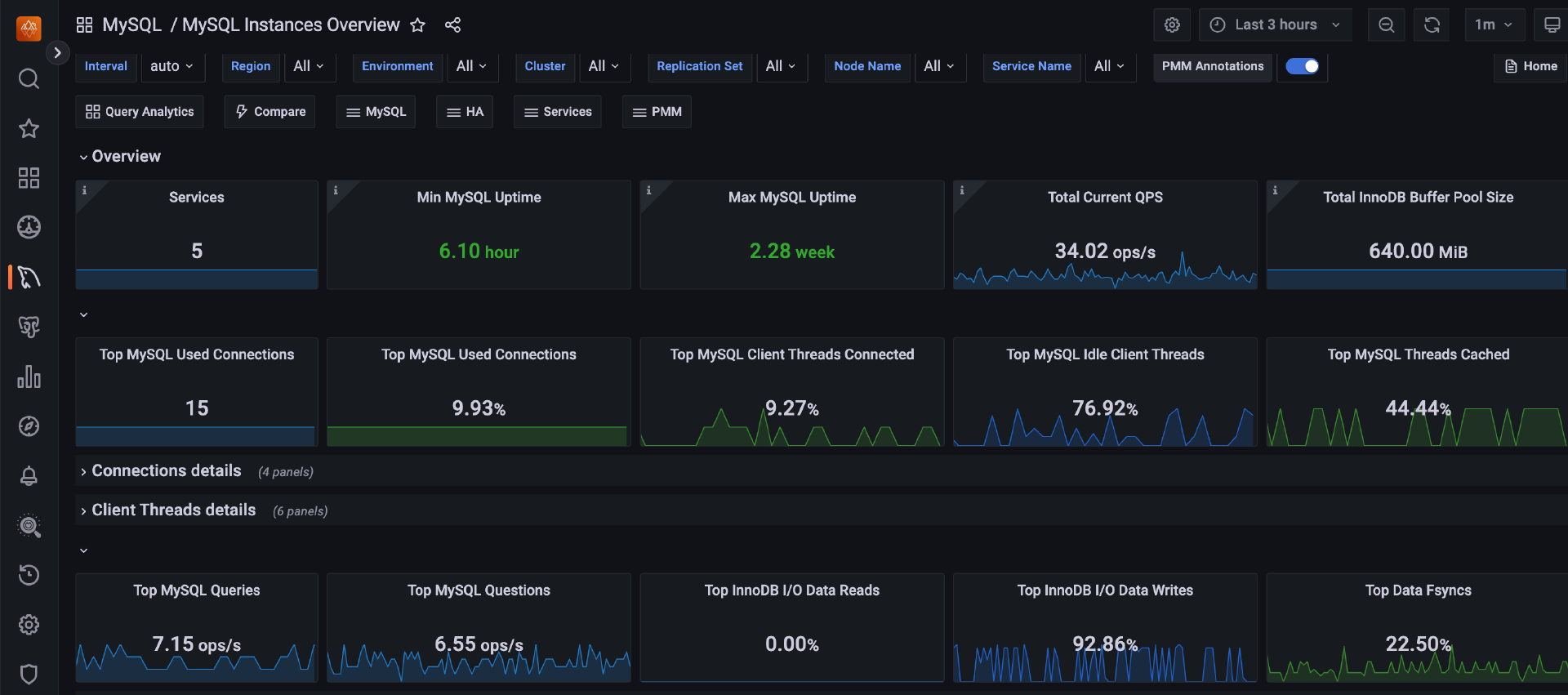 # docker ps CONTAINER ID IMAGE COMMAND CREATED STATUS PORTS NAMES 70540cffcdc4 percona/pmm-server:2 "/opt/entrypoint.sh" 16 hours ago Up 16 hours (unhealthy) 80/tcp, 0.0.0.0:443->443/tcp pmm-server