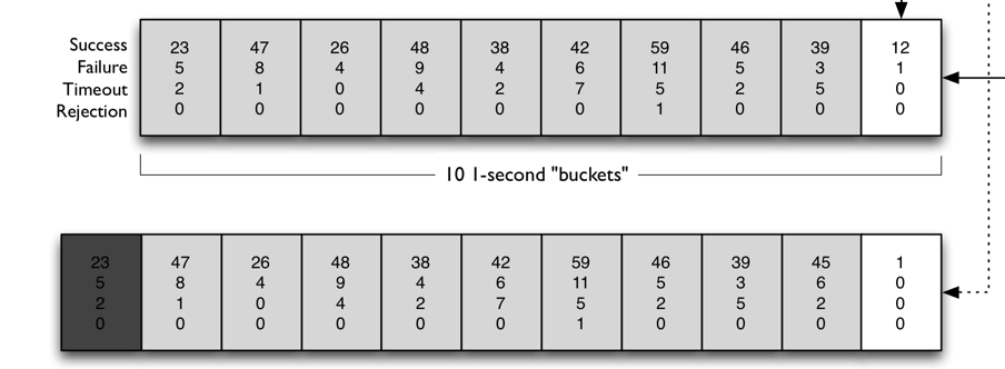 断路器实现的关键就在于如何计算一段时间内服务调用的失败率,那么Hystrix是如何做的呢?