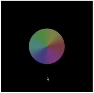 然后,我们根据角度换算出对应的比例对颜色进行线性插值。比如,比例在0%~45%之间,我们让颜色从红色过渡为绿色,那在45%到100%之间,我们让颜色从绿色过渡到蓝色。这样,我们最终就会得到如下效果: