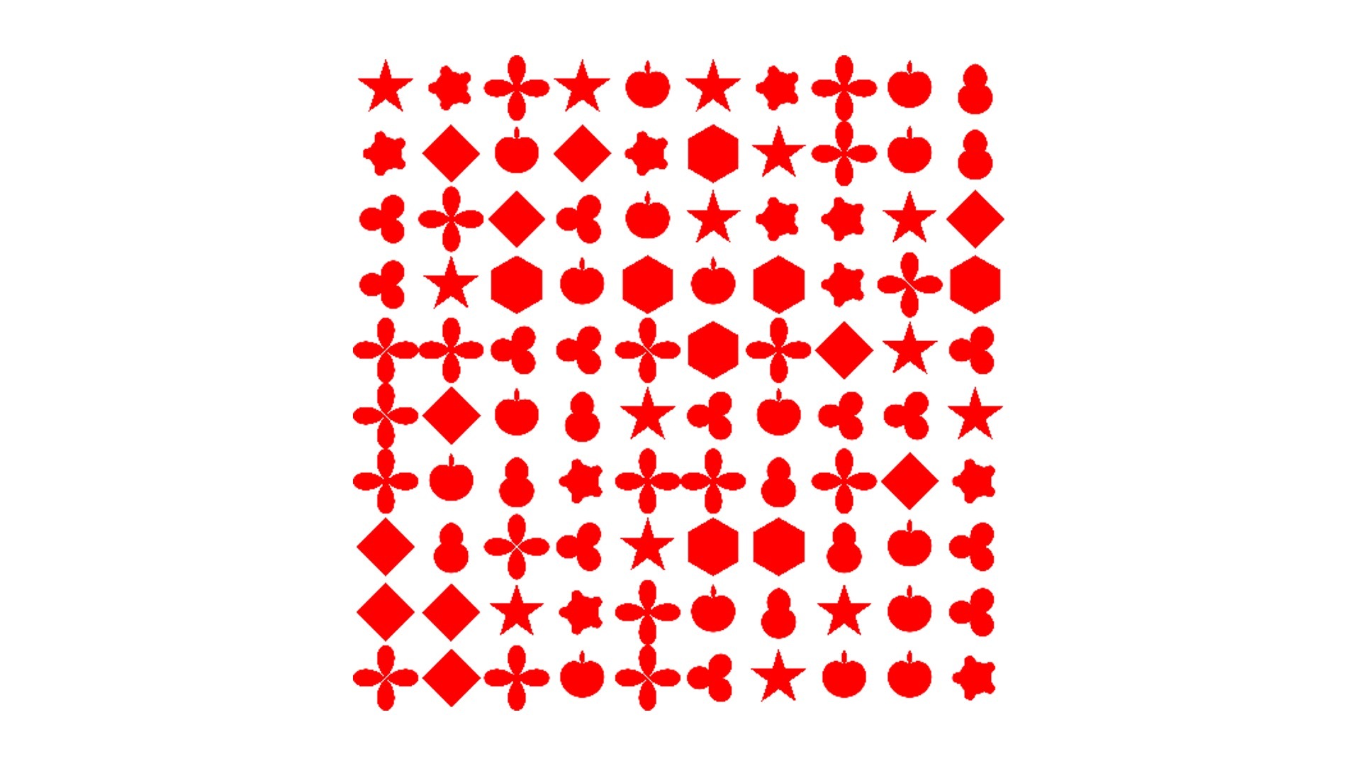 - 我们已经学过了随机数、距离场以及极坐标,你是不是可以利用它们绘制出一个画布,并且呈现随机的剪纸图案,类似的效果如下所示。
