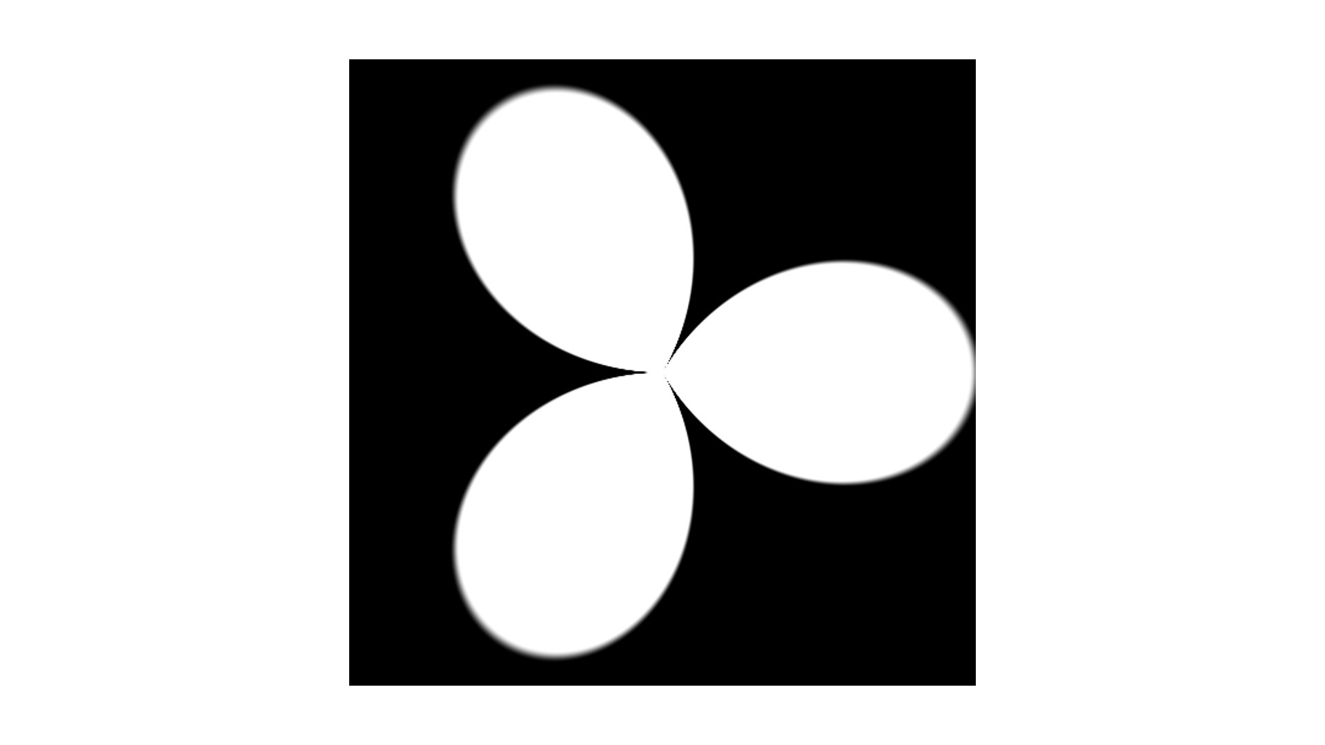 因此,smoothstep(-0.01, 0.01, d) 能够将 d >= 0,也就是玫瑰线内的点选出来,这样也就绘制出了三瓣图形。