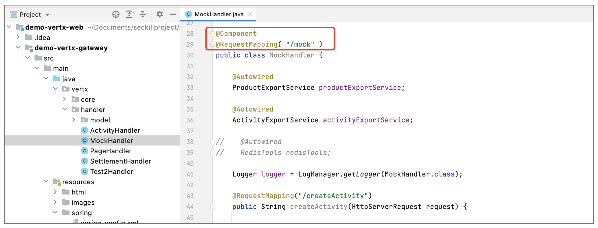 **第五步:**到这里,一些核心逻辑的编写就完成了。下面再看一个业务Handler的示例,为了让你适应SpringMVC的使用习惯,所以这里的写法风格上也是类似的: