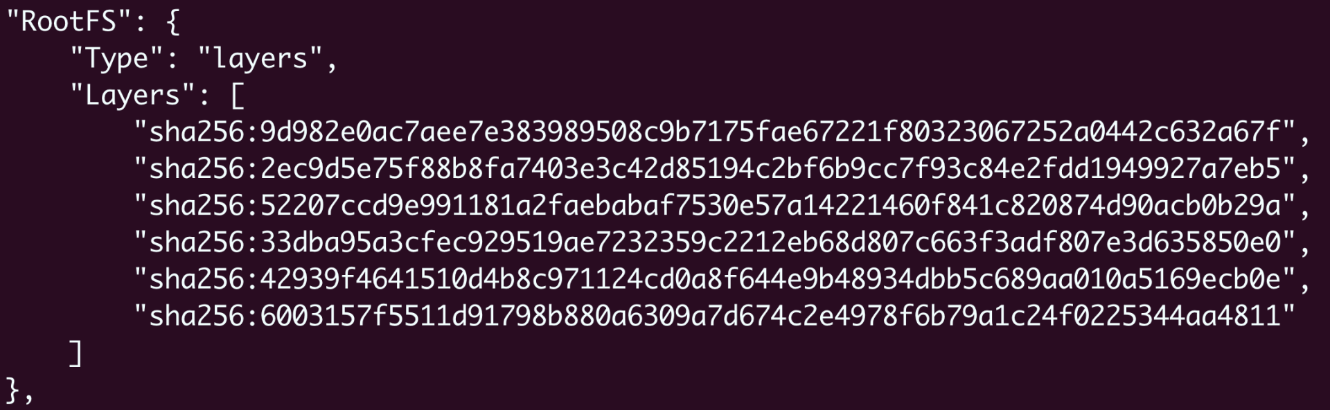 它的分层信息在“RootFS”部分: