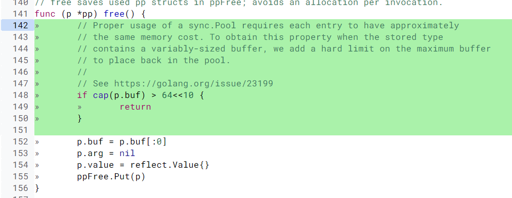 package fmt中也有这个问题,修改方法是一样的,超过一定大小的buffer,就直接丢弃了: