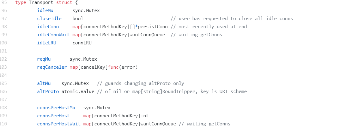 http.Client实现连接池的代码是在Transport类型中,它使用idleConn保存持久化的可重用的长连接: