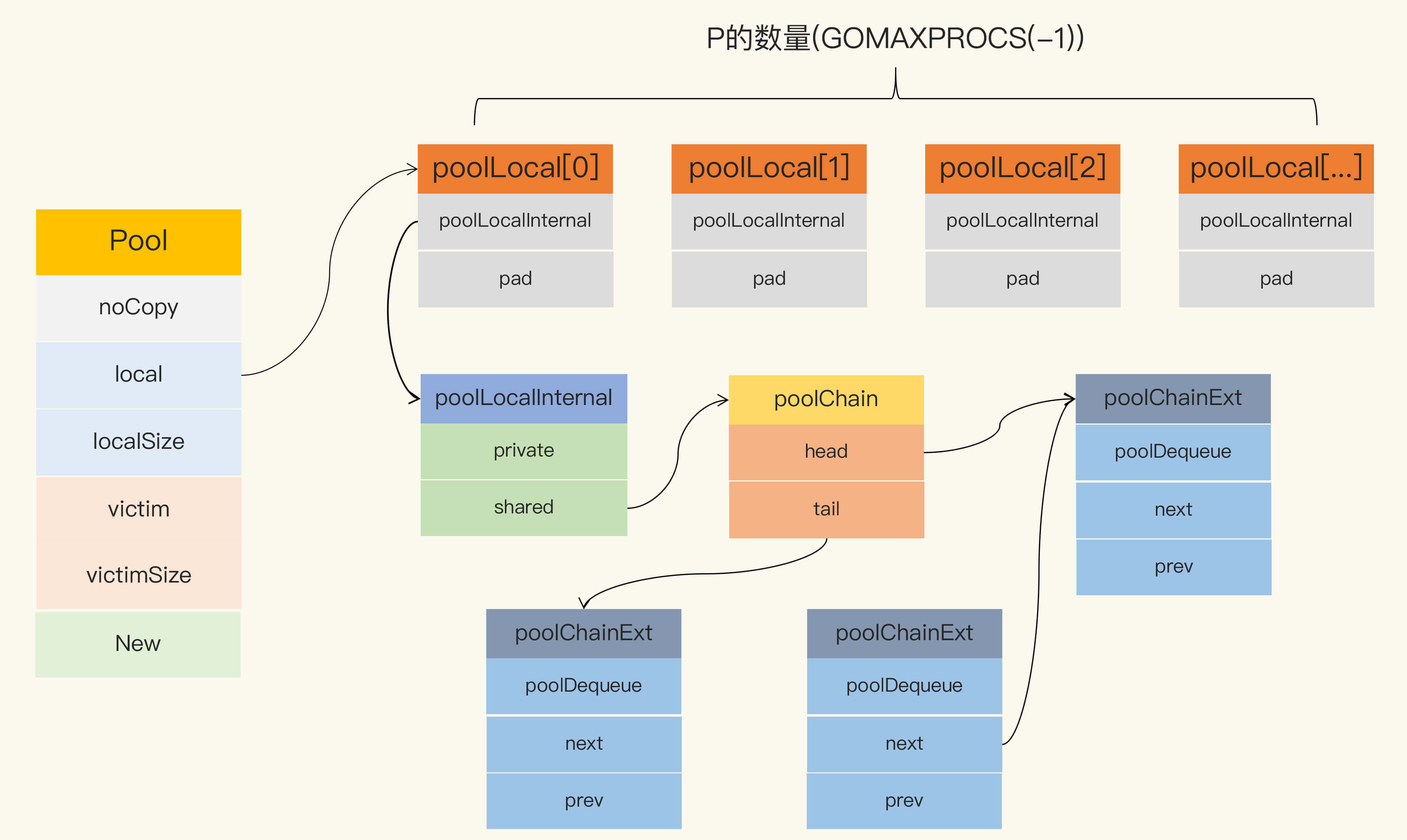 当前,sync.Pool的数据结构如下图所示: