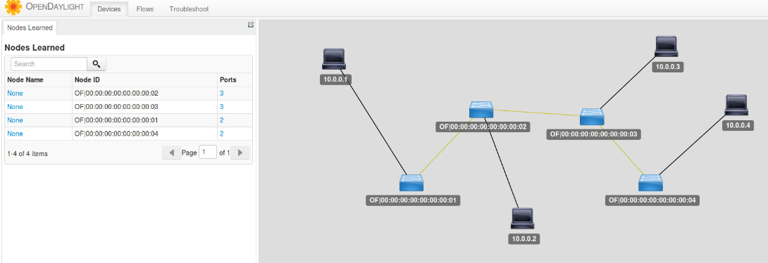 下面这个图就是OpenDaylight中看到的拓扑图。是不是有种物业管理员在监控室里的感觉?