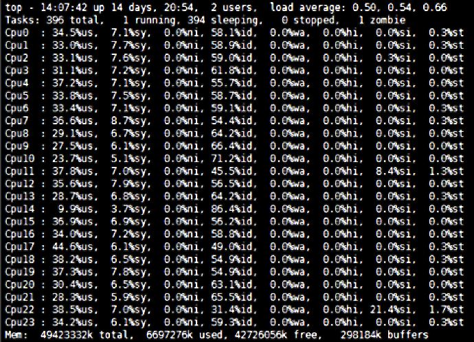 在我之前做过的一个项目中,有一个主机有24颗CPU,我在场景执行过程中看到了这样的数据: