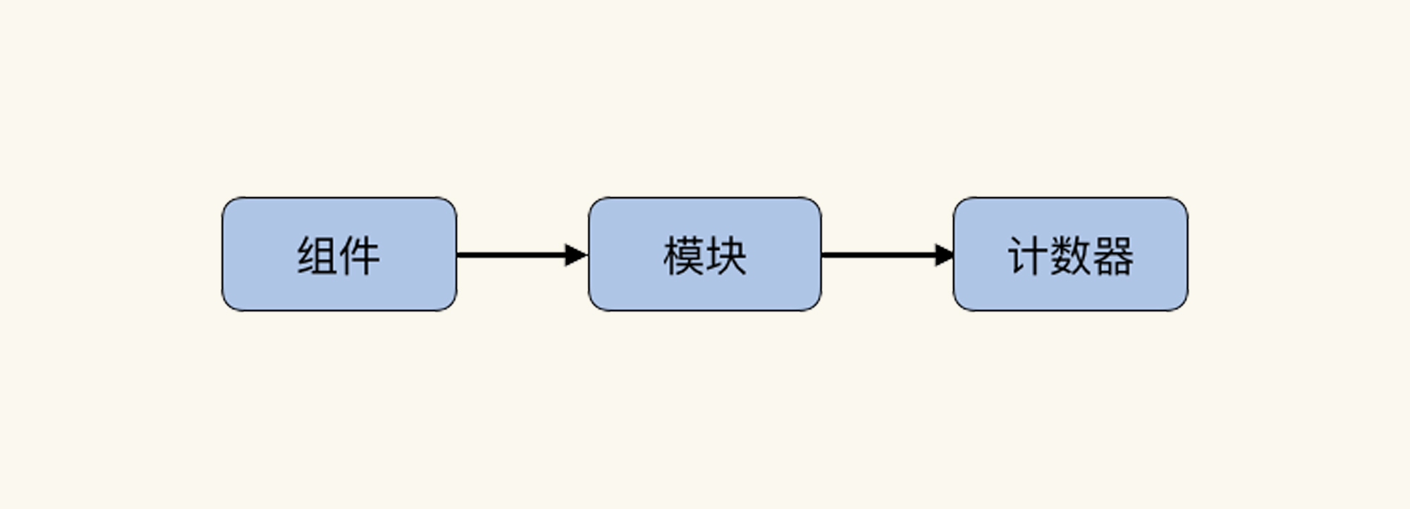 在这句话中,有三个重要的层级,分别是组件、模块和计数器: