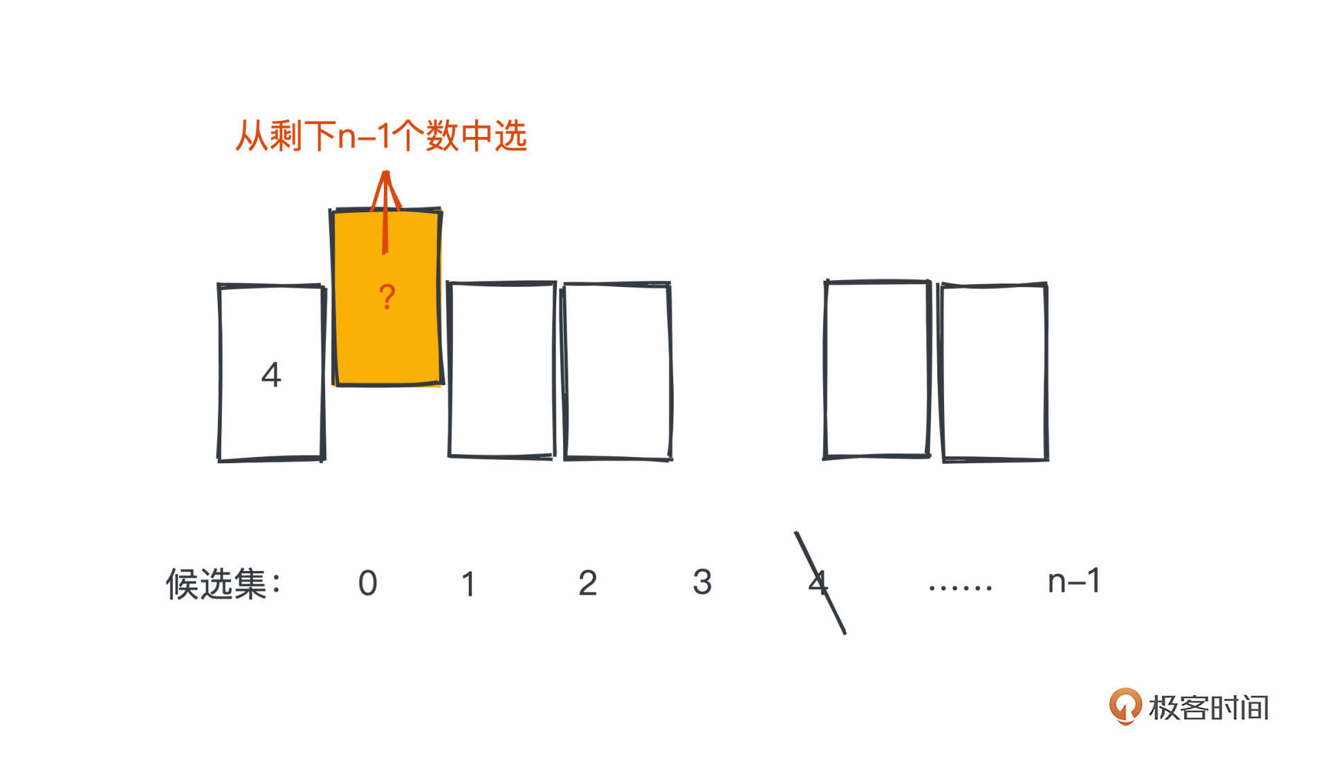 但是相信你也看到了,这个算法的弊端很明显。数组的随机删除操作会带来O(n)的时间复杂度,所以整体的时间复杂度就是O(n^2),并且引入了额外的数组来存放候选集时,也引入了O(n)的空间复杂度。这并不是一个理想的时空复杂度。