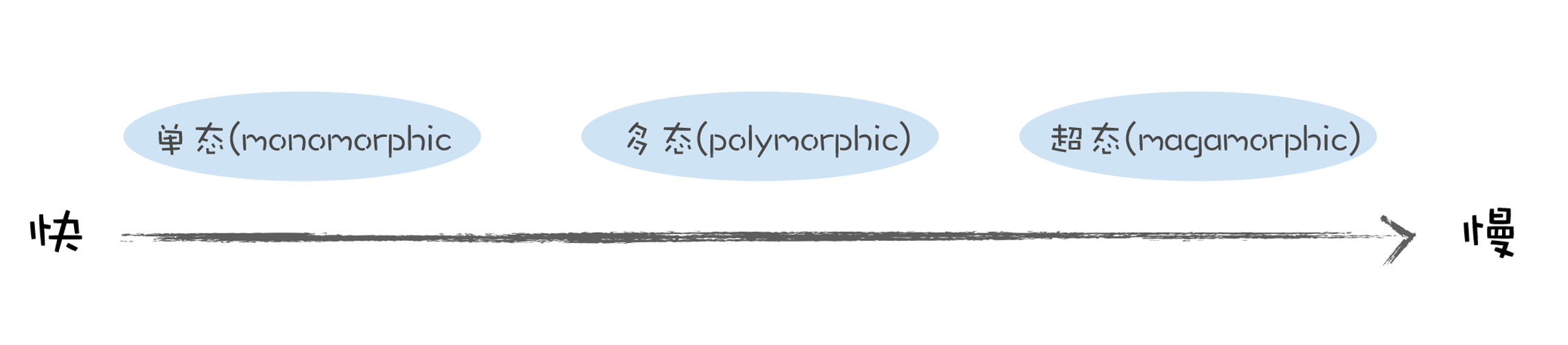 - 如果一个插槽中超过4个隐藏类,那我们称这种状态为超态(magamorphic)。