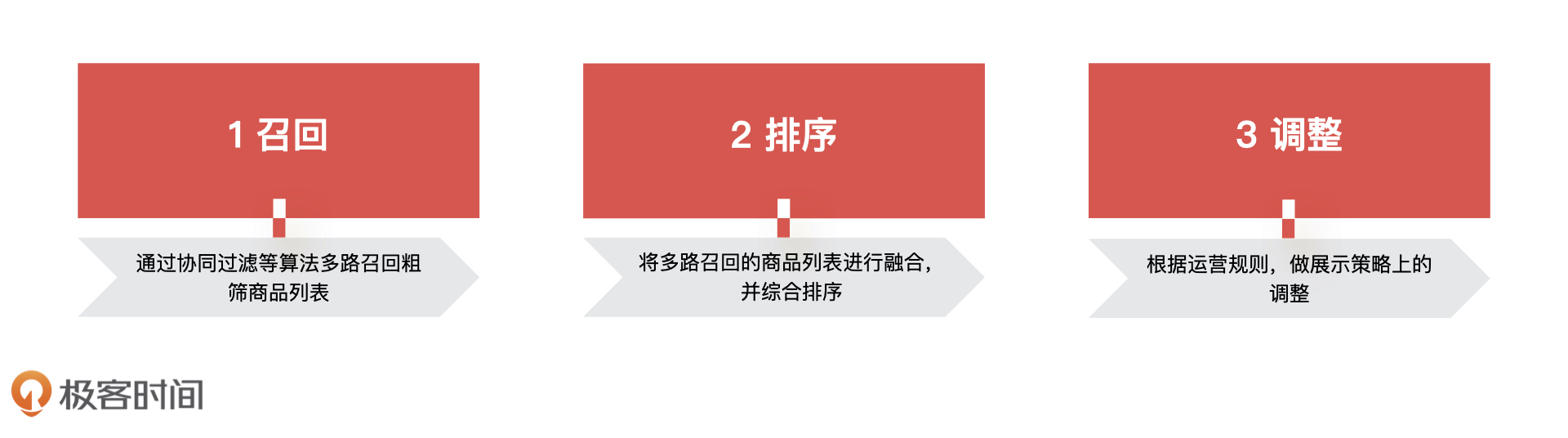 推荐系统将一个物品/内容推荐给用户主要会经历三个步骤,即商品召回、商品排序和综合调整。