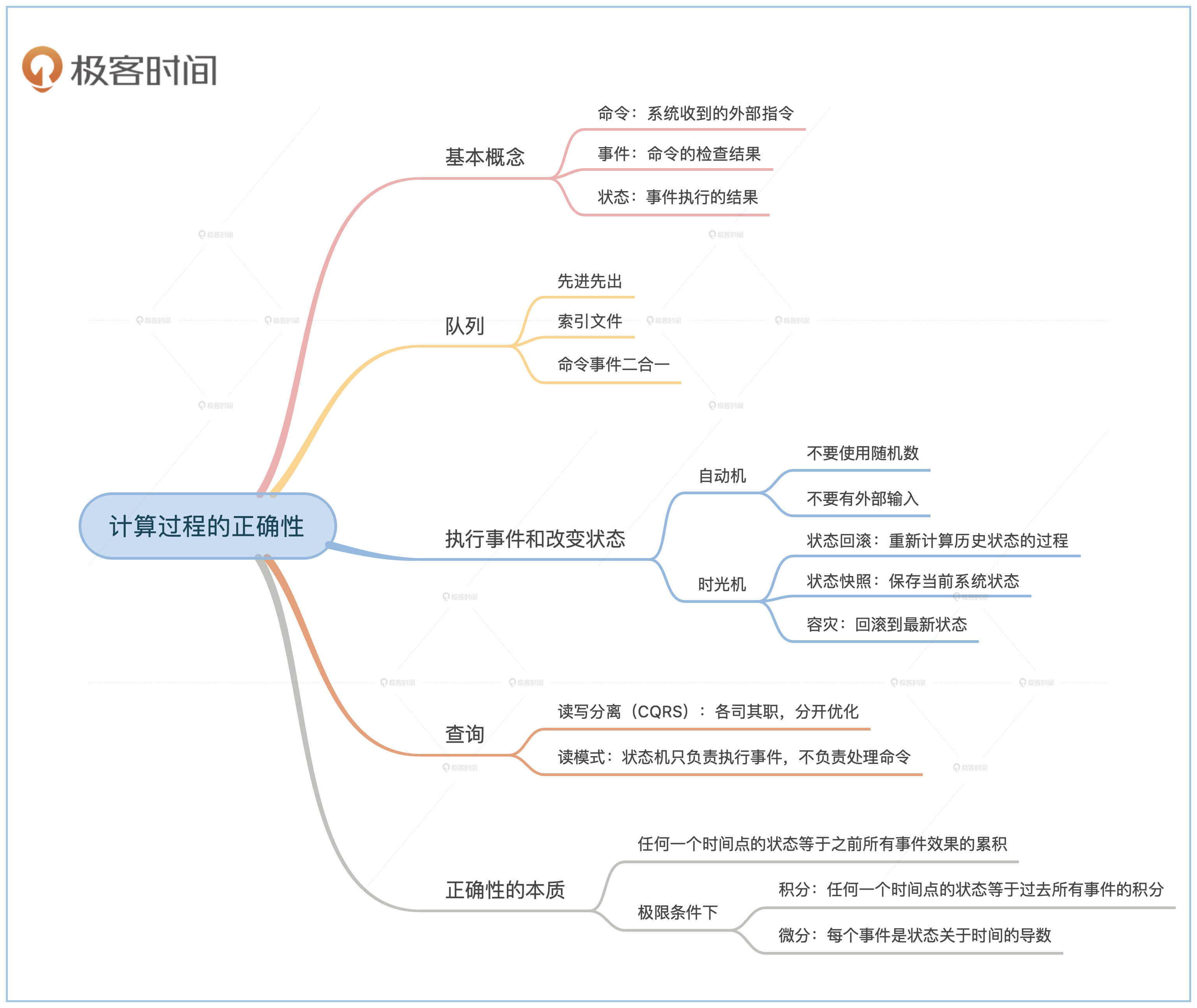 我们在开篇词里提到会带你透过现象看本质。所以在给你讲完怎么实现事件溯源之后,最后我来带你了解一下事件溯源正确性的本质。