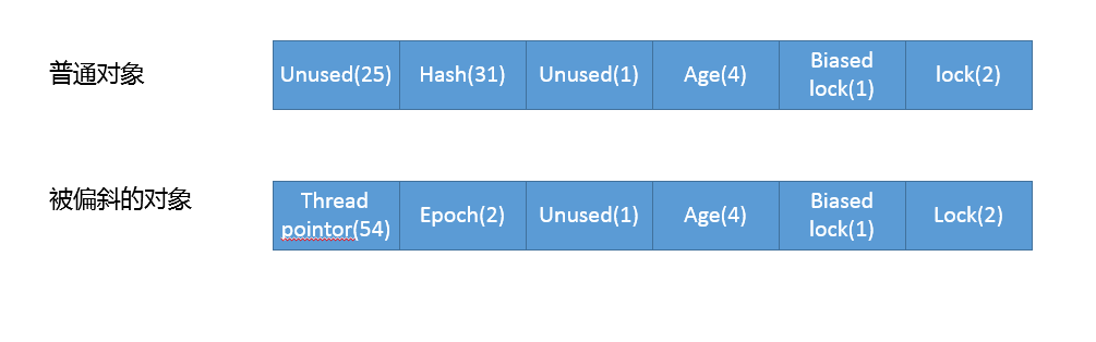 关于biasedLocking的更多细节我就不展开了,明白它是通过CAS设置Mark Word就完全够用了,对象头中Mark Word的结构,可以参考下图:
