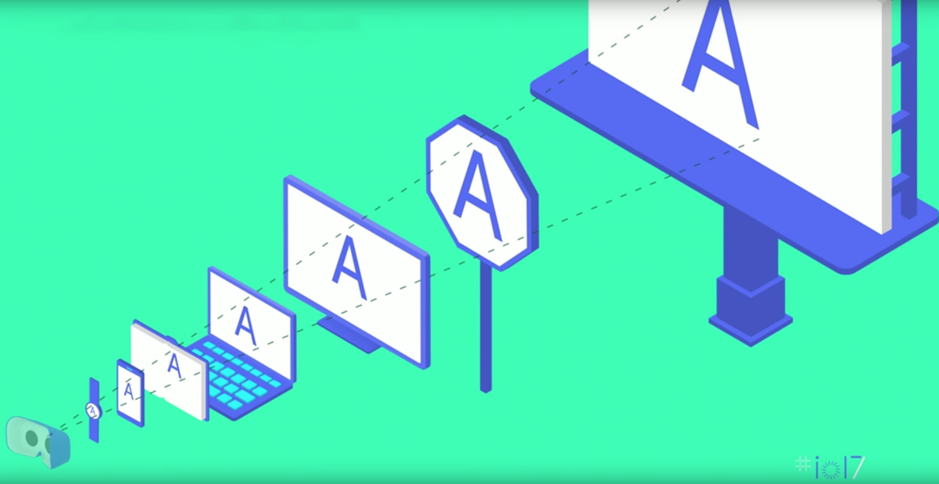 再者,虚拟空间中的元素同样要符合透视原理(近大远小)。比如我们要在一个VR眼镜中去显示一个固定面积大小的平面,随着我们虚拟的距离不同,那么这个平面代表的大小也需要相应发生改变。