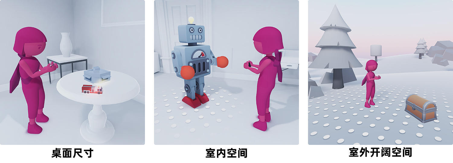 同样,虚拟元素放置的大小也要结合具体放置空间的面积。如果是放置在桌面上,虚拟元素的尺寸不能超出桌面的范围,如果空间足够,我们要尽量去模拟真实物体的尺寸比例。