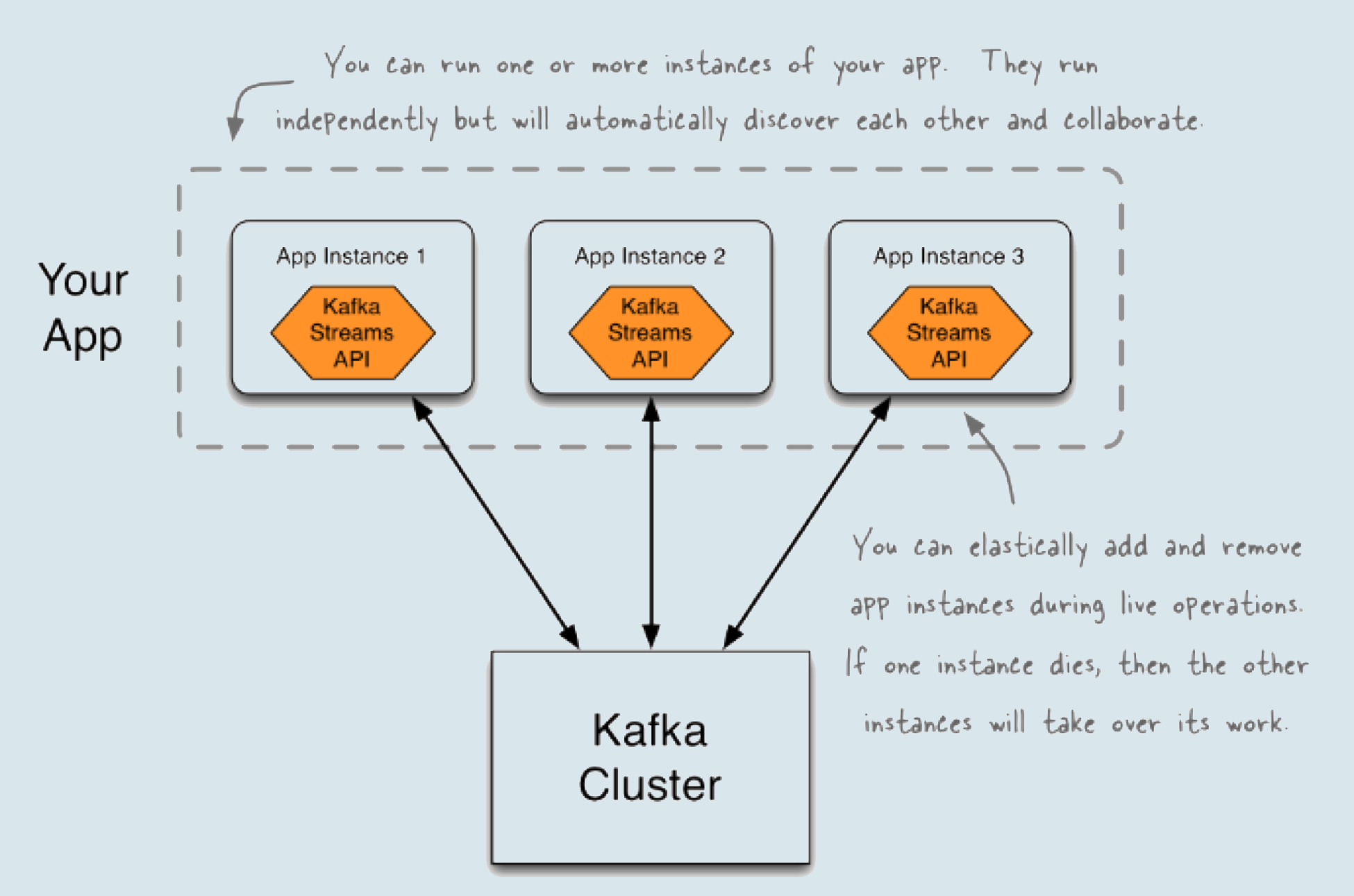 与其他流处理框架不同的是,它仅仅是一个类库,用它编写的应用被编译打包之后就是一个普通的Java应用程序。你可以使用任何部署框架来运行Kafka Streams应用程序。