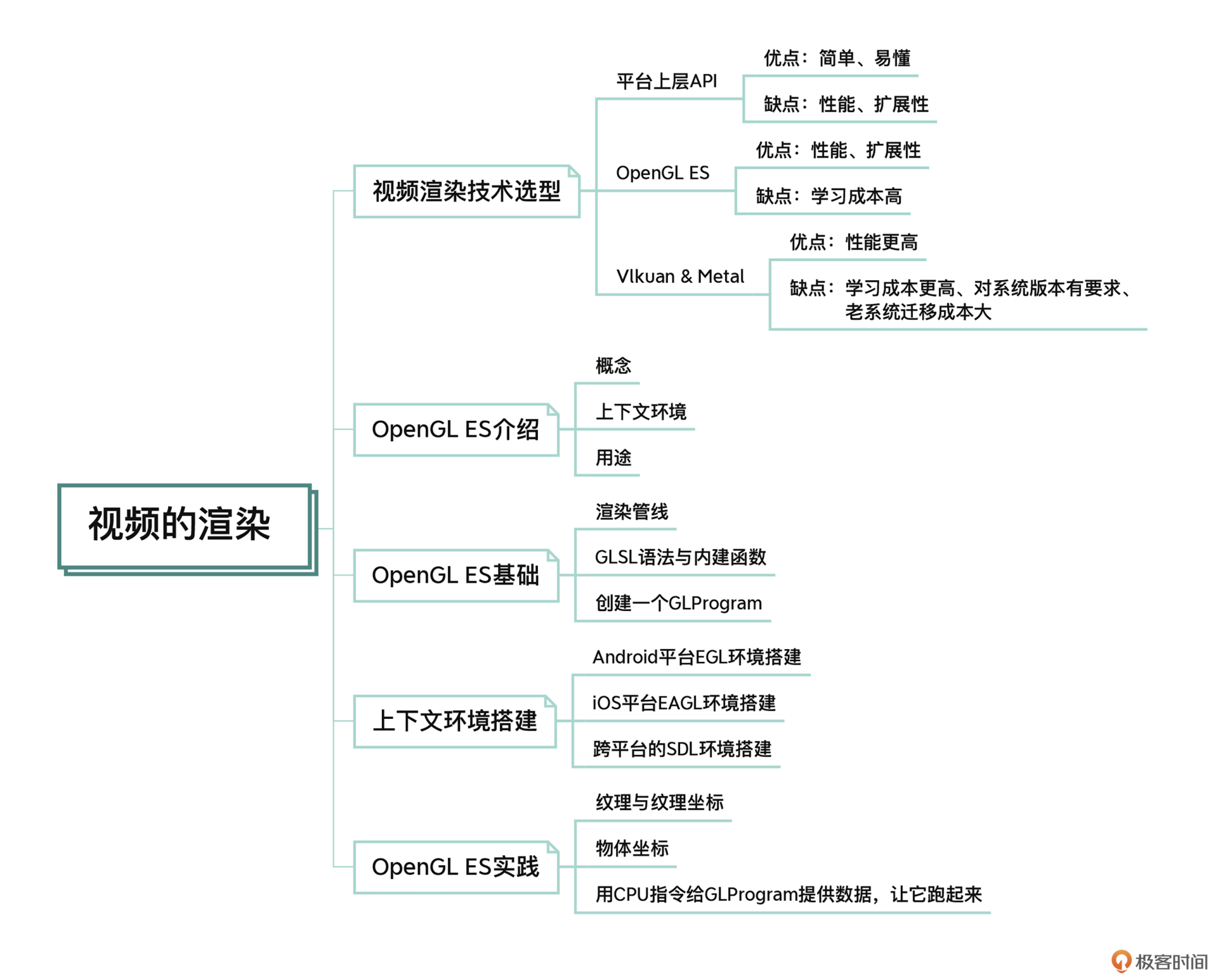 我们从视频渲染的技术选型开始,给你介绍了几种视频渲染的技术手段并且分析了各自的优缺点,最终选择OpenGL ES作为我们这个部分的学习重点,但是要想完全弄懂OpenGL ES并实际上手操作,确实比较难。