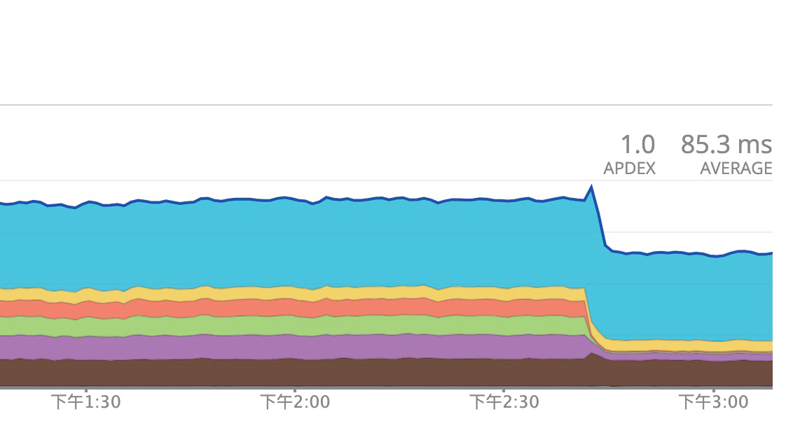 为了更好地支撑优化成果分析,在优化版本上线过程中,我们又使用监控工具来获取了系统的平均响应时延变化情况,具体如下图所示: