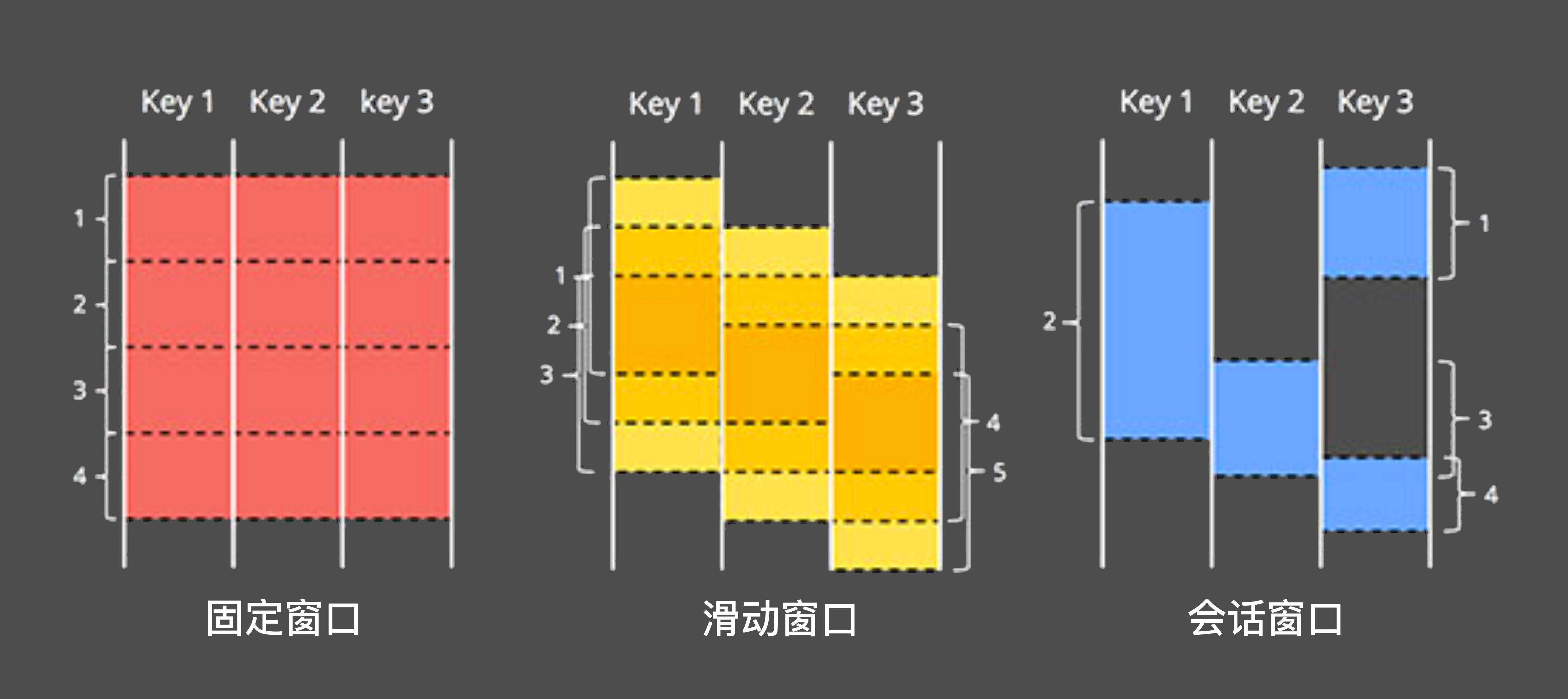 通过不同的窗口划分规则,可以实现不同的计算目的,包括以时间驱动的固定窗口、滑动窗口和计数窗口,以及以事件驱动的会话窗口。为了避免乱序事件的影响,还可以通过携带超时时间的Watermark水位,基于事件发生时间更精准地划分窗口。