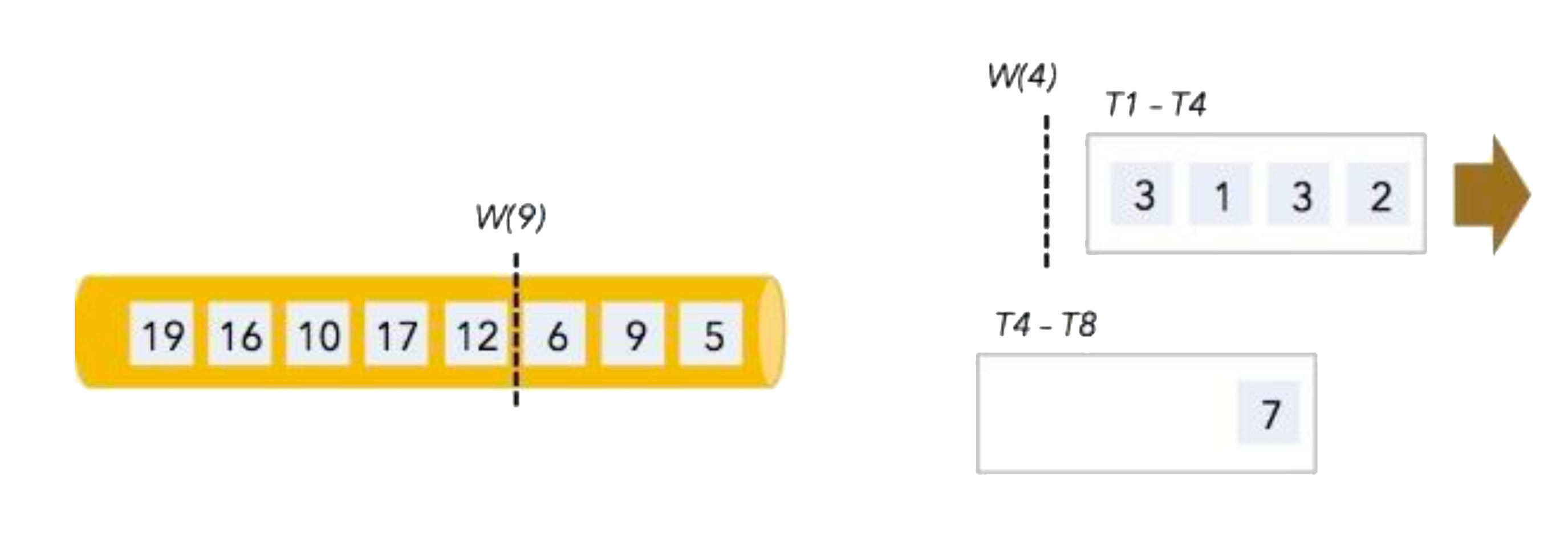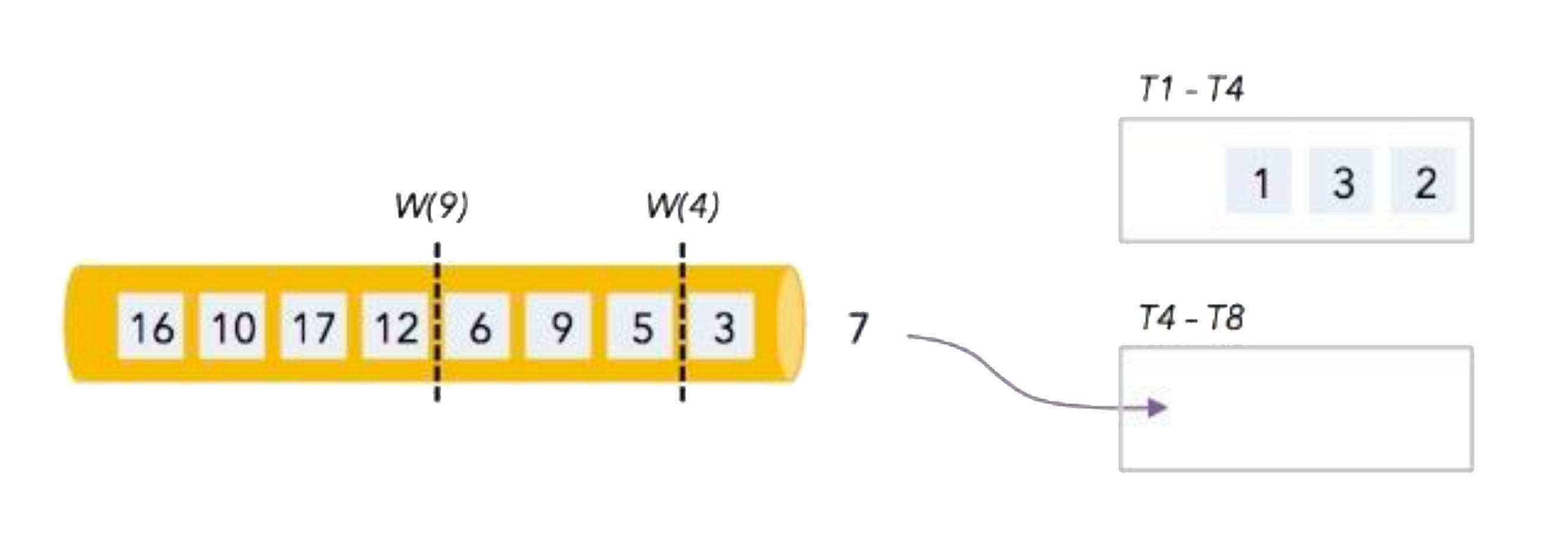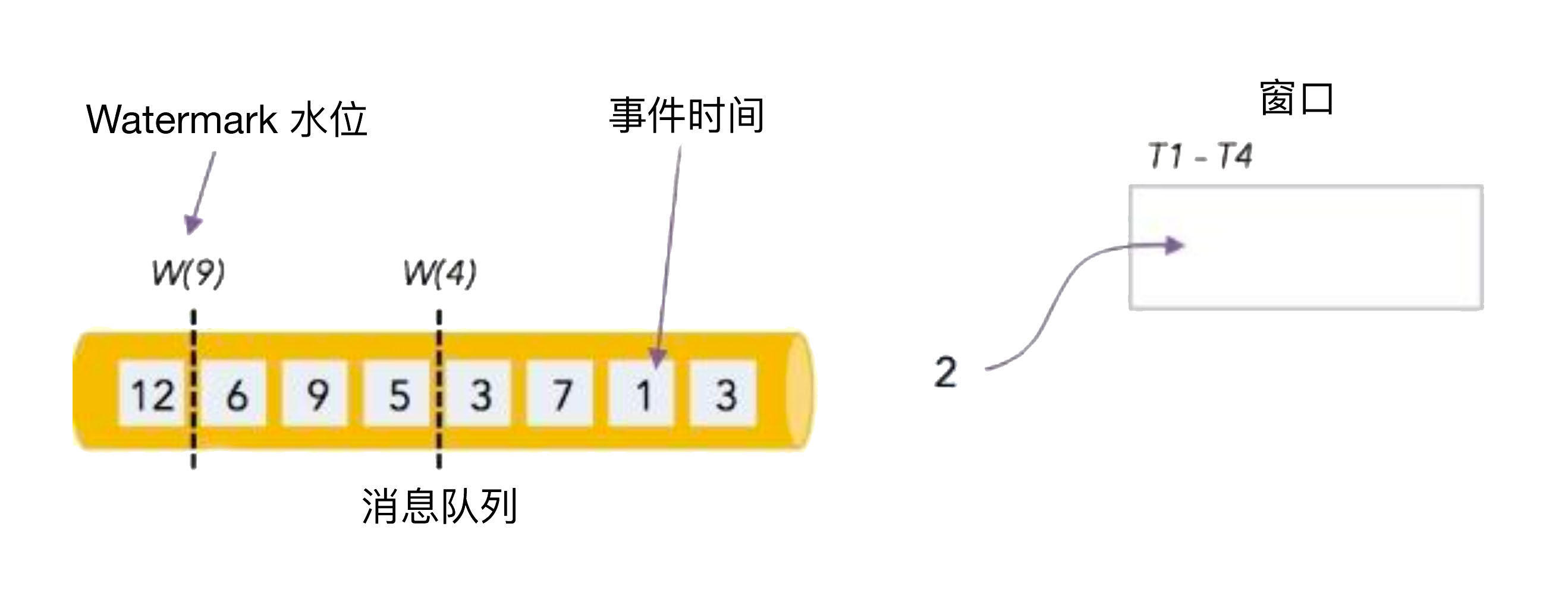 如果设置了水位4,窗口就不再以事件顺序严格划分,而是通过水位上的时间来划分窗口,这样事件7就会放在第2个窗口中处理: