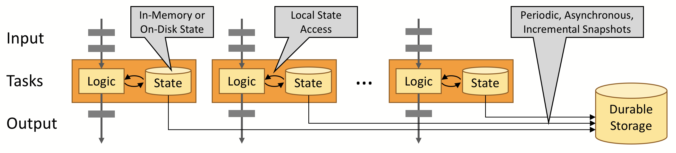 因此,中间状态可以更均衡地使用计算资源,提高流式计算的整体性能。我们既可以把中间状态放在内存中,也可以把它持久化到本地磁盘中获取更高的可用性,为了方便计算节点的调度,我们通常还会将备份状态存放至远端的数据库。