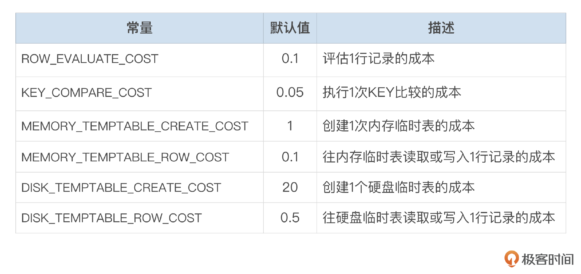 mysql> create table t_cost ( id int not null auto_increment, a int not null, b int not null, c int not null, d int not null, padding varchar(7000) DEFAULT NULL, primary key (id), key idx_ac(a,c), key idx_bc(b,c) ) engine=InnoDB;