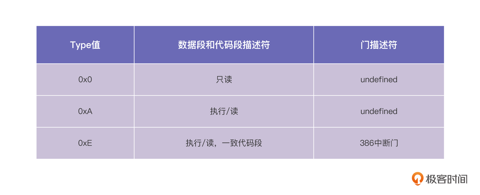 最后是Type属性,它定义了描述符类型,我把比较重要的类型用表列在了下面,你可以看看。