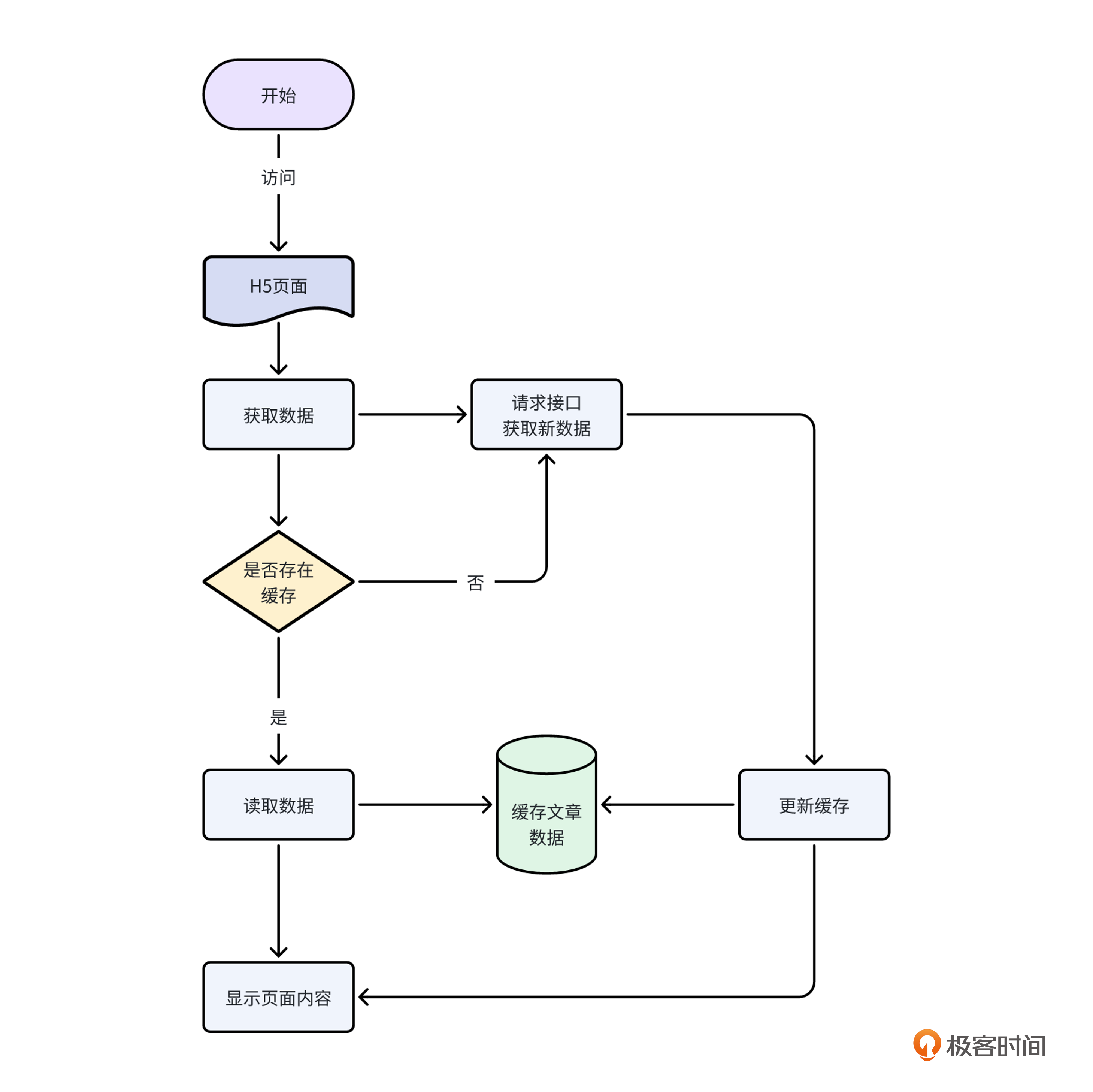这种策略实现逻辑简单,只需使用LocalStorage就能实现数据缓存。下面是一个基于这种策略的代码示例。